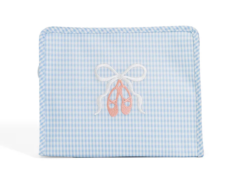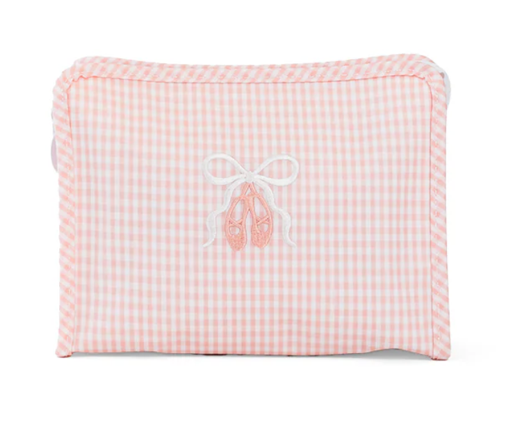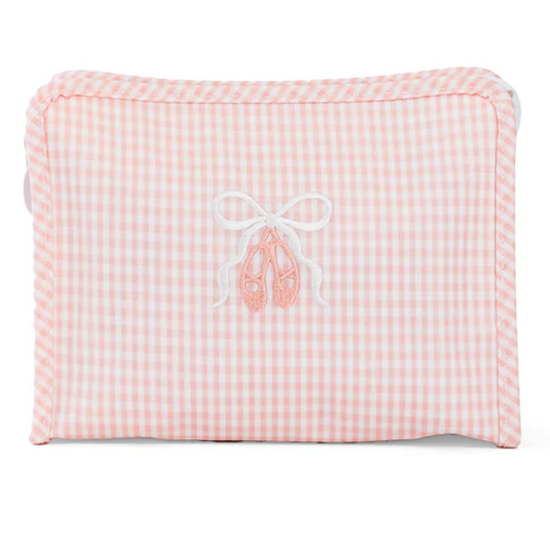 Our best-selling Roadies are our BFFs in the pouch world! Available in 2 sizes, our Medium Roadie is made in an Embroidered cotton gingham with a thin Eco-friendly matte coating, an inside slip pocket and exterior snap open zip tabs for a wider opening and an easier access.