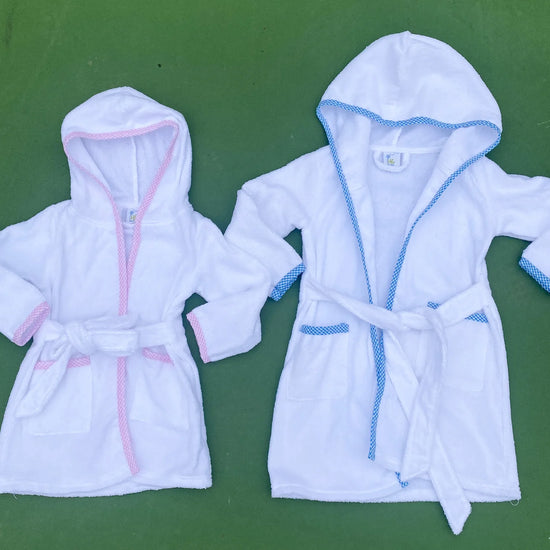 Our new hoodie robes are a must have this summer! They are perfect for the bath, pool, or beach. Adorable with or without a monogram and come in 3 functional sizes.