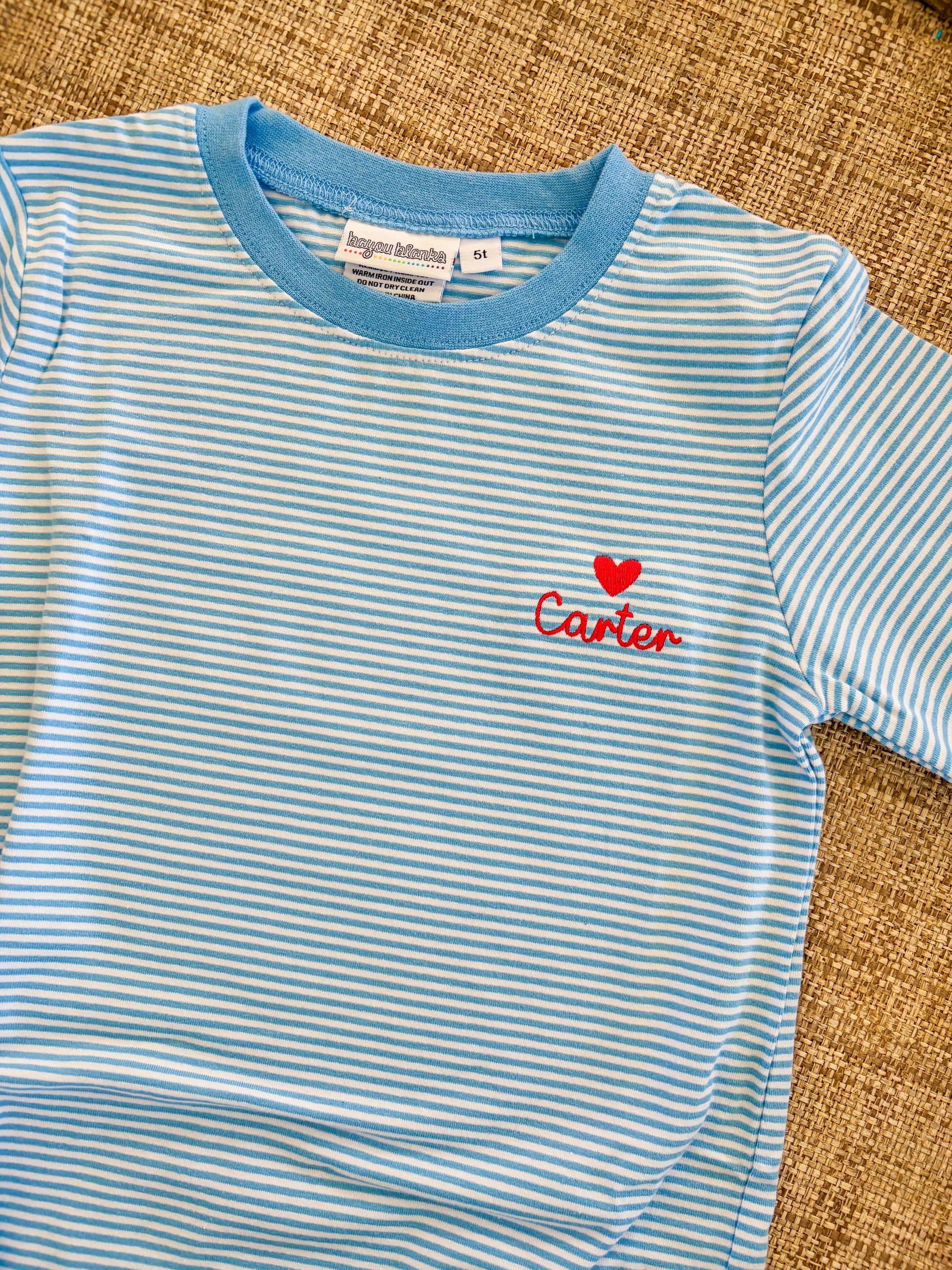 “Carter” Cornflower Stripe 5T short sleeve shirt