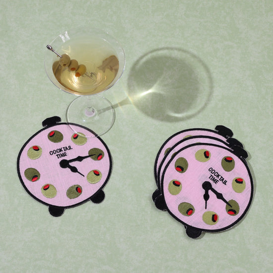Set the clock for happy hour with our Cocktail Time linen napkins. Featuring a vintage-inspired clock face garnished with playful olives, these napkins are a nod to the timeless art of the cocktail. Crafted from crisp linen, they bring a touch of charm and a dash of whimsy to every pour — whether you’re hosting a soirée or savoring a quiet martini moment. Cheers to good timing and even better company!