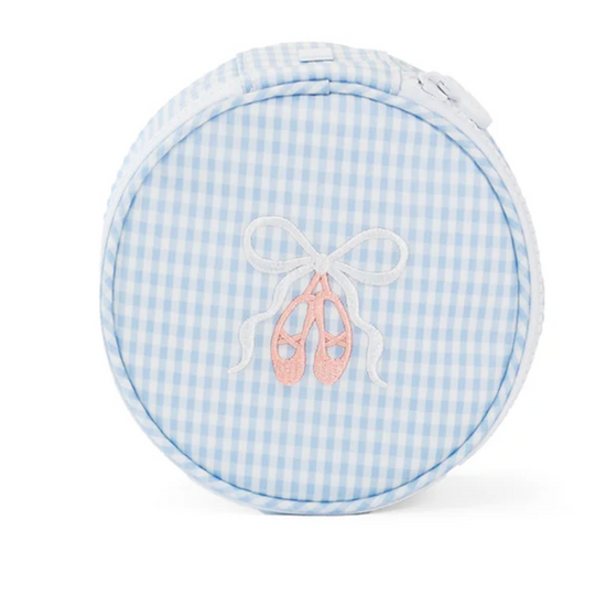 Our Embroidered Jewel Round is super lightweight and a perfect place to store your bits and baubles. It has elasticized compartments around the outer edge with a roomy middle compartment for bulkier pieces, like watches, bracelets and hair ties. This case can just as easily be used as a general catch-all for things like keys or earbuds. As a bonus, it looks pretty enough to leave out on your dresser or desk when you're not traveling.