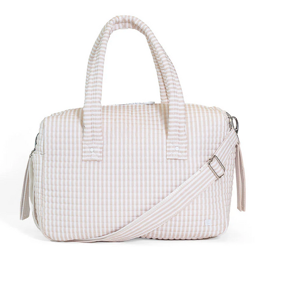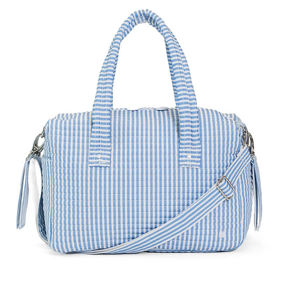Fit all of your essentials with ease when you carry this perfectly designed Stroller Bag that can be worn as a tote, crossbody, or it can be Velcro onto your stroller. Crafted in a water repellant material, this versatile bag features enough space to hold bottles, blankets, and toys for you and your baby. Built with interior pockets to hold essentials, 2 exterior side slip pockets for bottles, removable straps and is machine washable.