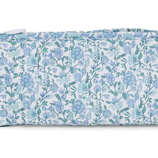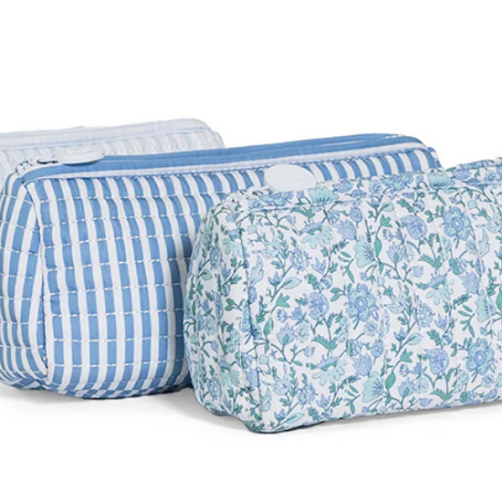 This mini Pochette bag is a soft, lightweight quilted zippered pouch that can hold all your go to items. This style is both functional and beautiful and would be a great addition to any TRVL set. It is wipeable inside and out and machine washable.