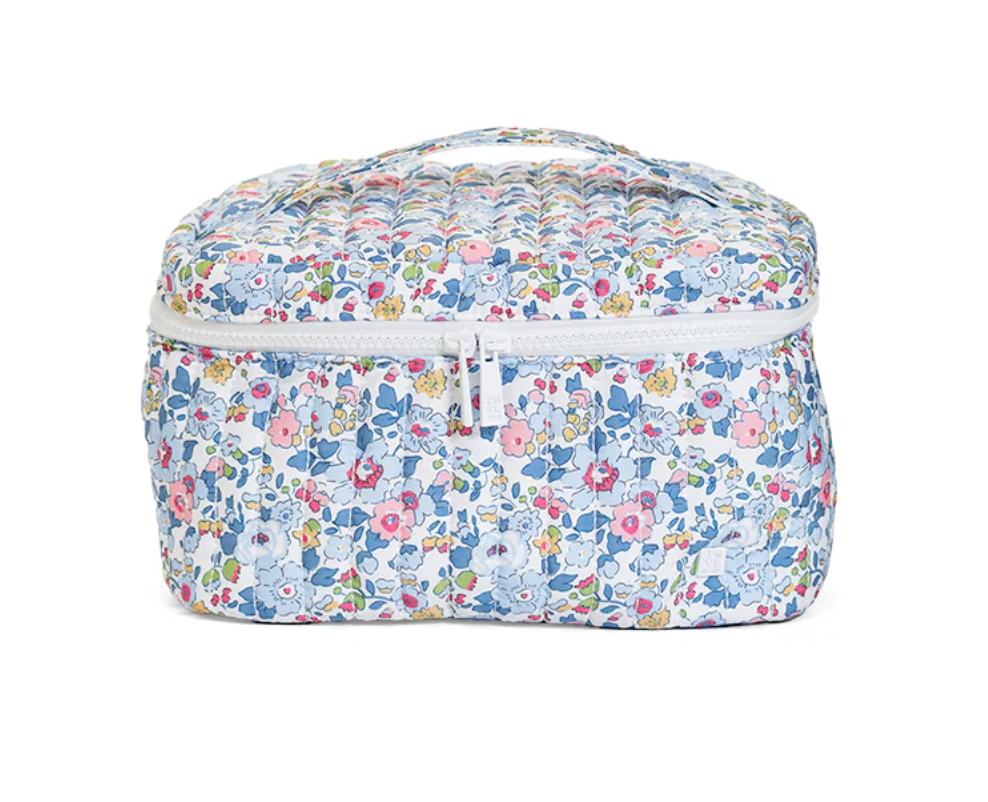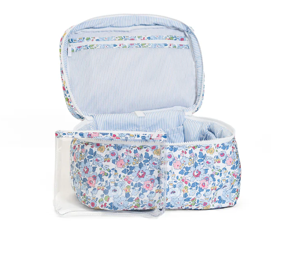 Our Quilted Train Set is super stylish and lightweight that will keep your cosmetics organized on the go. It opens up to offer ample room for makeup and beauty products, a zippered mesh pocket on the inside lid, elasticized compartments around the outer edge, and a removeable clear pouch. This set makes the perfect thoughtful gift for a lover of beauty and cosmetics or it can be an ideal treat for yourself when you're off on your travels.