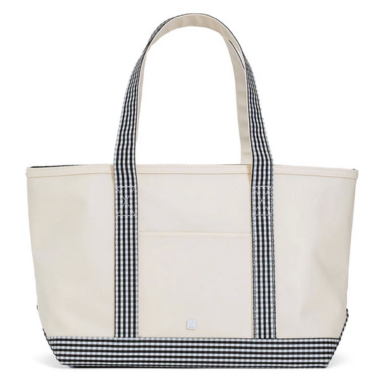 A bag that fits all your needs, the Medium Tote is the perfect size - day-today, beach, gym, groceries, or a weekend getaway! Coated, wipeablem and washable, this tote is unlined with a drop-in zip collar, inside key fob and outside slip pocket. Sized to hold up to a 17" laptop.
