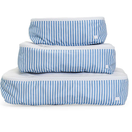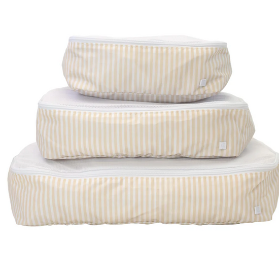 Don't leave home without your Packing Squad - these are a TRVL Game changer!! Imagine how satisfying it is to open your suitcase and know exactly where everything is in our pretty custom printed cubes! Designed in a super lightweight material that will keep your clothes neat and super organized. All 3 cubes comes have a poly mesh top panel and they fit perfectly into your luggage and drawers so you can pack and unpack in a flash!