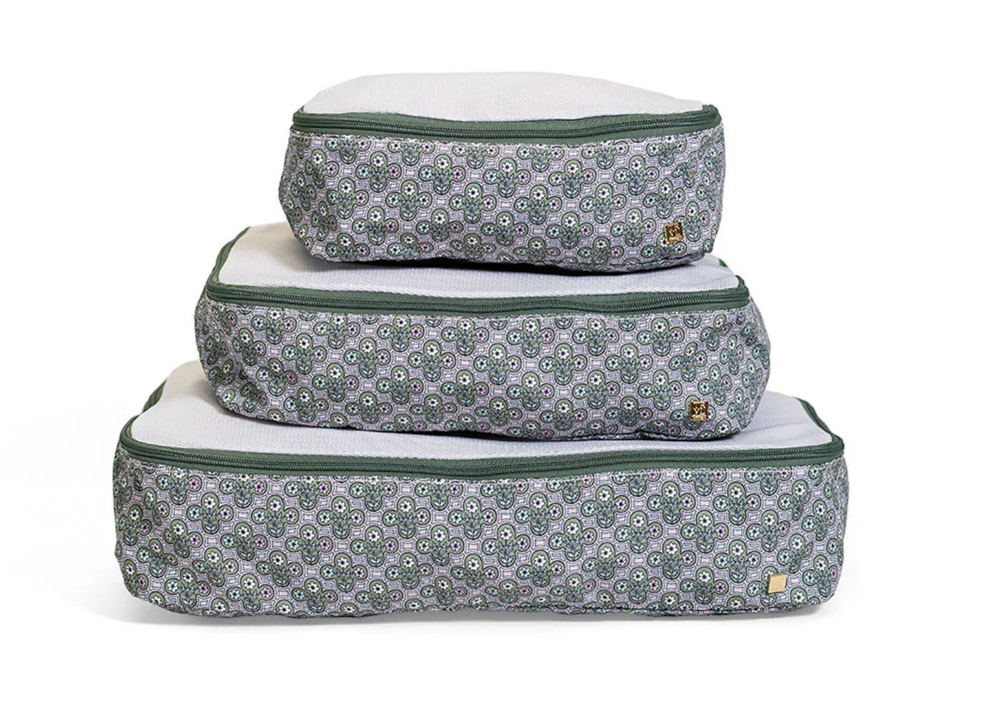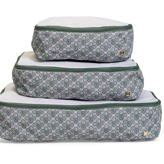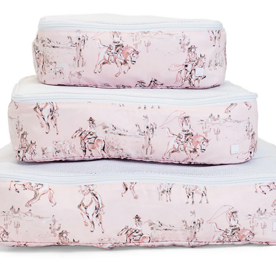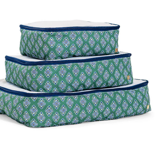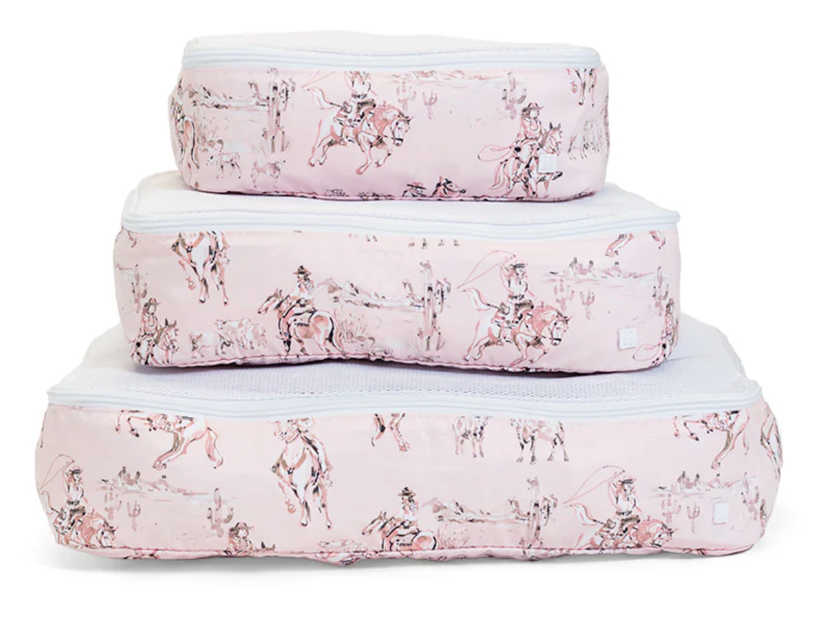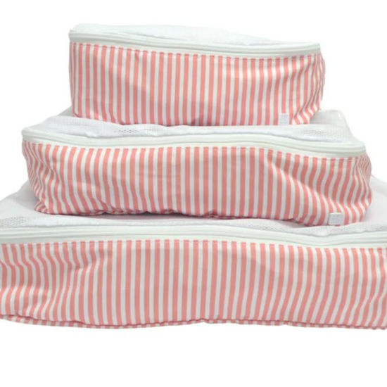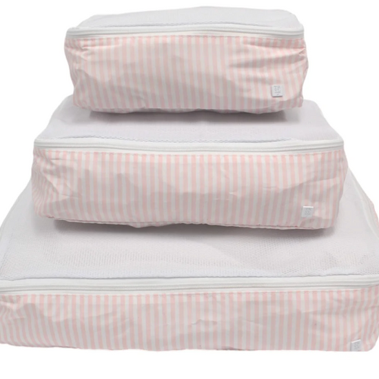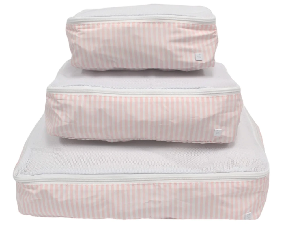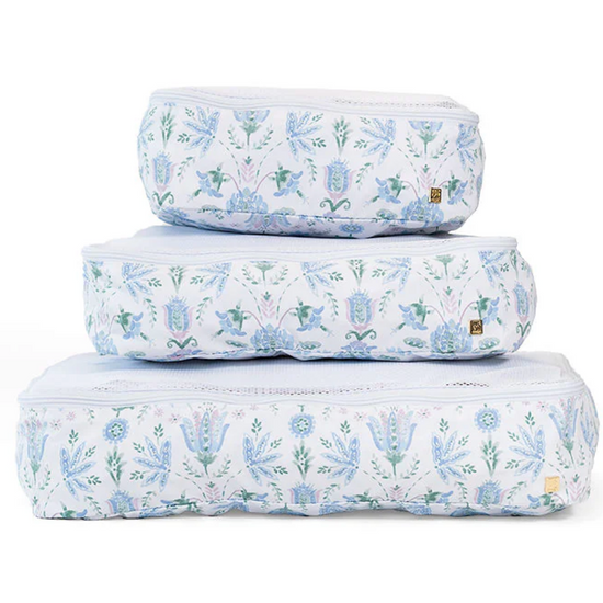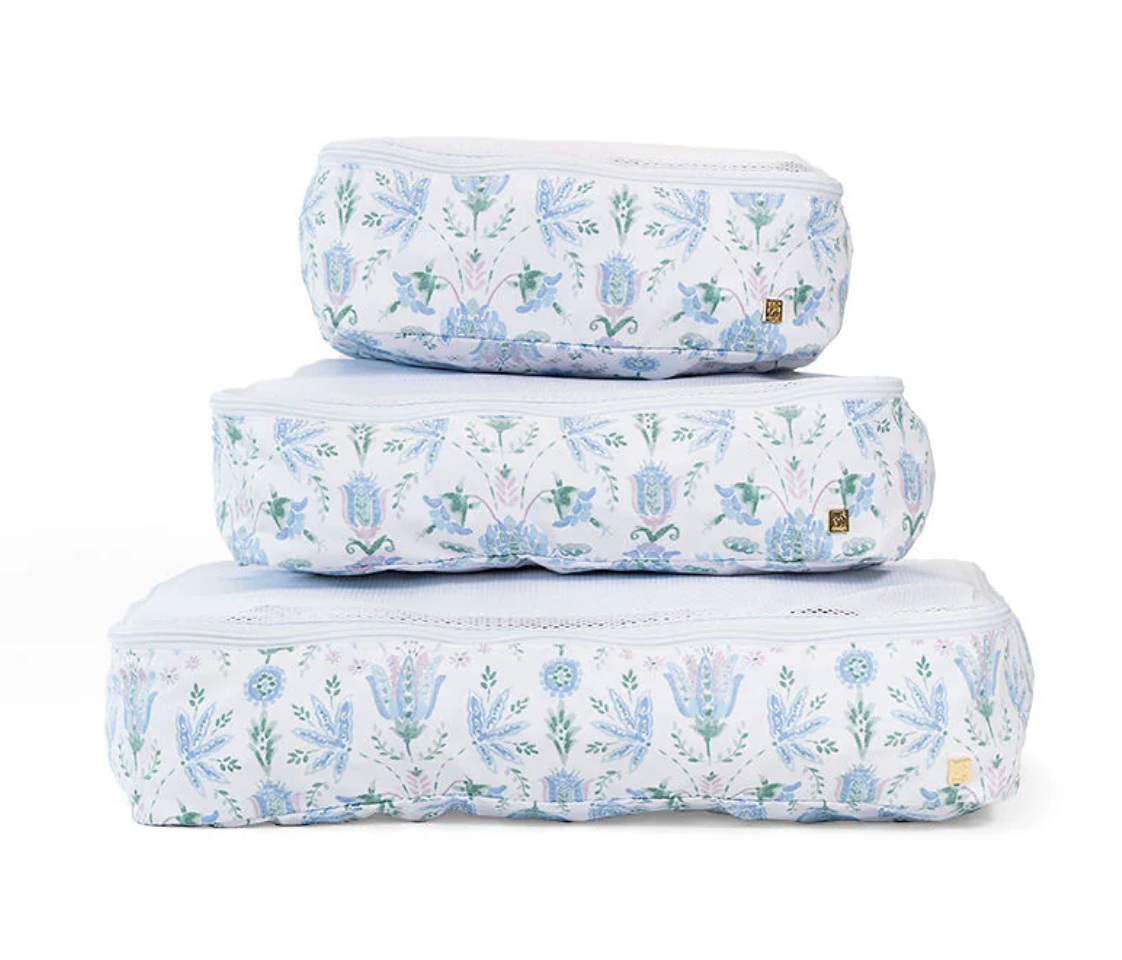 Don't leave home without your Packing Squad - these are a TRVL Game changer!! Imagine how satisfying it is to open your suitcase and know exactly where everything is in our pretty custom printed cubes! Designed in a super lightweight material that will keep your clothes neat and super organized. All 3 cubes comes have a poly mesh top panel and they fit perfectly into your luggage and drawers so you can pack and unpack in a flash!